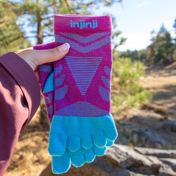 Das Fünf-Zehen-Design verhindert Blasen, positioniert die Zehen auf natürliche Weise und leitet Feuchtigkeit ab und erhöht die Bewegungsfreiheit des Fusses.