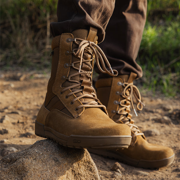Entwickelt für die Anforderungen des Dienstes, bietet diese taktische Boot Performance mit einer Passform, die tatsächlich für verschiedene Fußformen funktioniert. Auf unserem breitesten Leisten gebaut, bietet sie Militärangehörigen zusätzlichen Platz im Zehenbereich und eine stabile Plattform, sodass lange Missionen und schweres Gepäck keine schmerzenden Füße bedeuten. Der hohe 9" Schaft bietet Knöchel Unterstützung und Schutz, während er die notwendige Bewegungsfreiheit für Bewegung, Lastentragen und schnelle Übergänge ermöglicht.