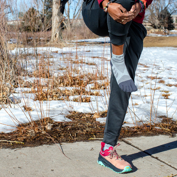 Das Fünf-Zehen-Design verhindert Blasen, positioniert die Zehen auf natürliche Weise und leitet Feuchtigkeit ab und erhöht die Bewegungsfreiheit des Fusses.