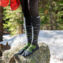 SNOW OVER THE CALF (OTC)Die Injinji Snow Over The Calf Socken sind speziell für Aktivitäten im Herbst- und Winterwetter entwickelt. Das bewährte Design mit fünf Zehenhülsen verhindert reibungsbedingte Blasenbildung und fördert die natürliche Zehenspreizung. THERMOLITE® EcoMade-Fasern helfen, Wärme zu erzeugen, indem sie die natürliche Infrarotenergie des Körpers nutzen und eine isolierende Luftschicht in der Socke bilden, ohne zusätzliches Volumen hinzuzufügen.Die mittelschwere Polsterung mit gepolsterten Zehen sorgt für mehr Komfort unter den Füßen. Der Over-The-Calf-Sitz bleibt während des Trainings sicher und schützt das untere Bein vor den Elementen.
