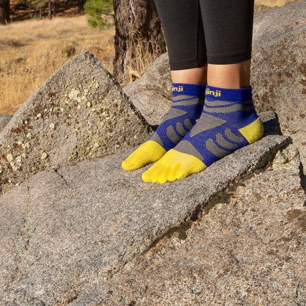 Das Fünf-Zehen-Design verhindert Blasen, positioniert die Zehen auf natürliche Weise und leitet Feuchtigkeit ab und erhöht die Bewegungsfreiheit des Fusses.