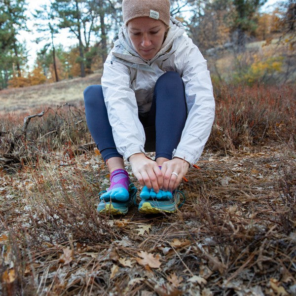 Das Fünf-Zehen-Design verhindert Blasen, positioniert die Zehen auf natürliche Weise und leitet Feuchtigkeit ab und erhöht die Bewegungsfreiheit des Fusses.