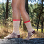 Die Höhe des Sockenoberteils ist hoch und reicht bis zur Mitte der Wade, was das Eindringen von Schmutz in die Socken verhindert und Sie besser vor Zeckenbissen schützt. Die ergonomische Form ist speziell auf die Füsse von Frauen zugeschnitten.